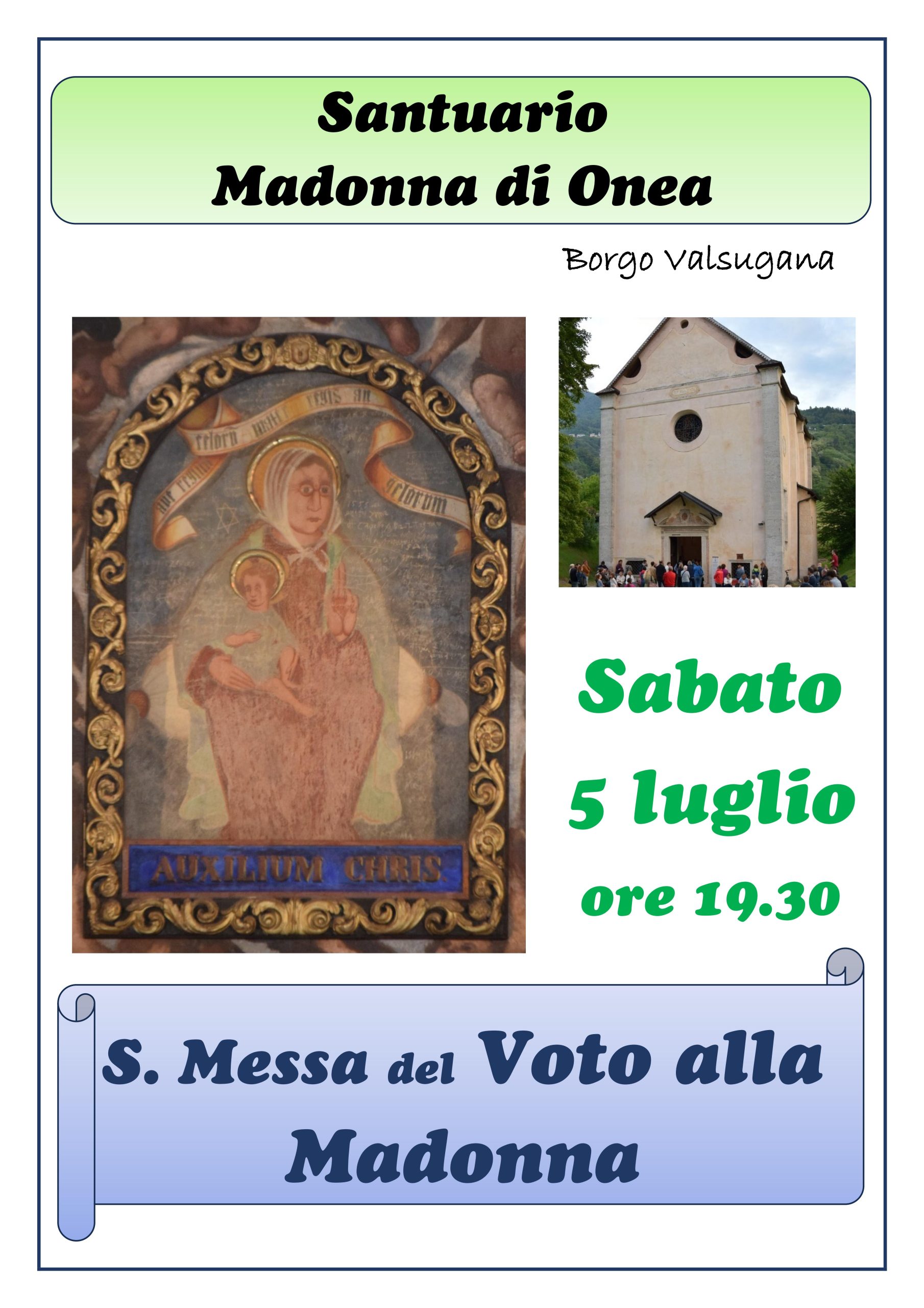 Sabato 5 luglio alla S. Messa delle 19.30 si rinnova il Voto alla Madonna di Onea della comunità del Borgo, ecco la locandina: