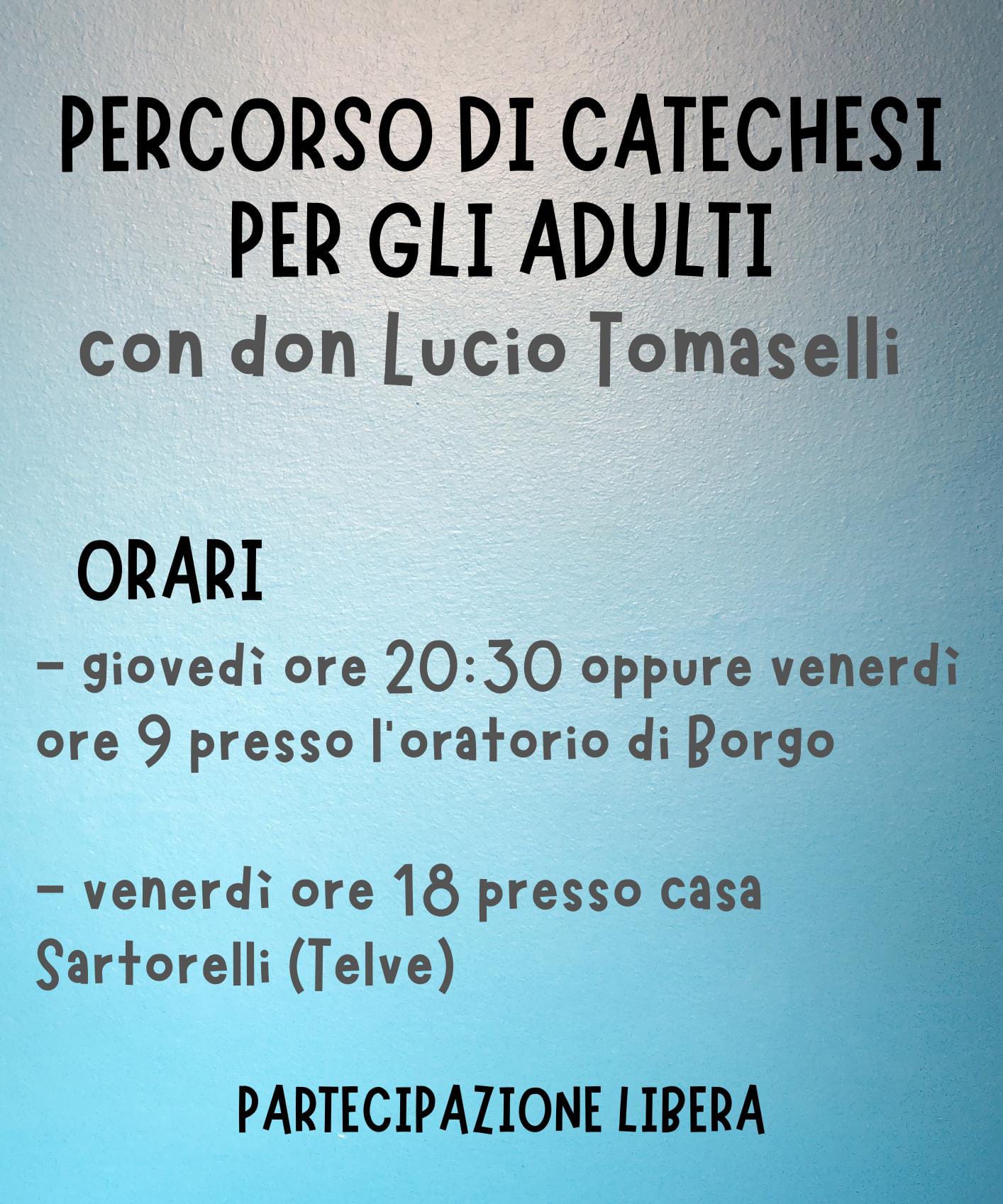 Don Lucio propone un percorso di catechesi per gli adulti. Ci sono ben tre orari fra cui scegliere il più gradito.