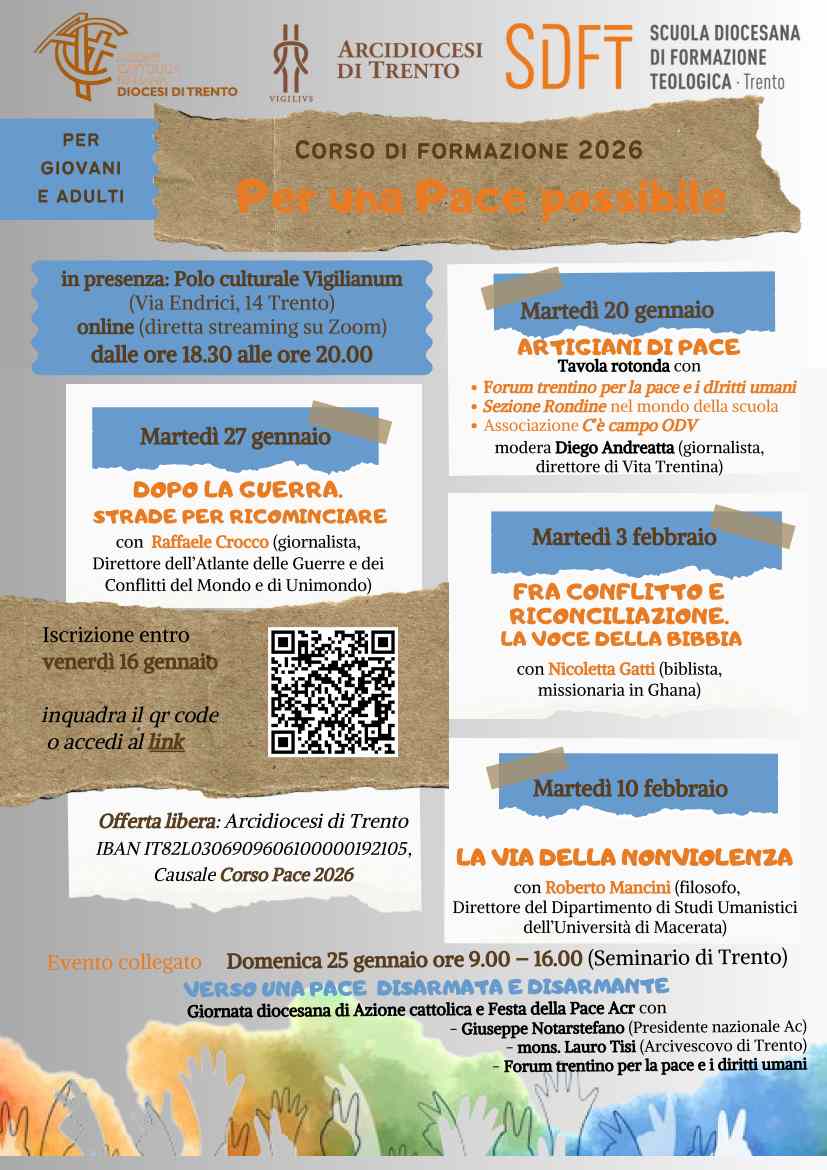 La diocesi propone un corso di “Pace possibile”, ecco qui sotto la locandina: