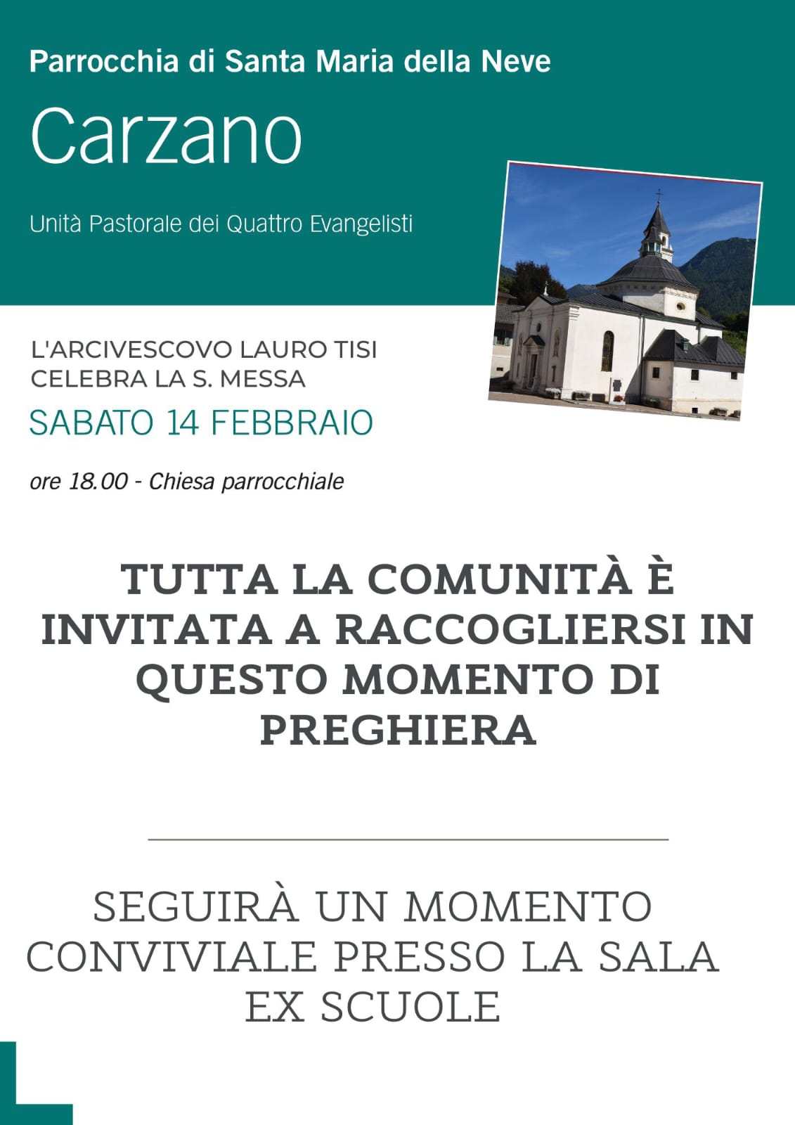 Ecco la locandina per la visita alla parrocchia di Carzano, un grazie a tutti coloro che aiutano per una bella accoglienza!